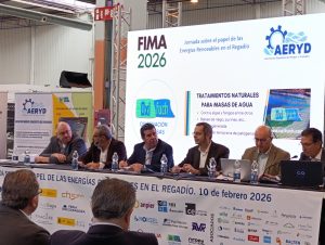 En el marco de FIMA 2026, la Feria de Zaragoza acogió el pasado 10 de febrero la jornada técnica “El papel de las energías renovables en el regadío”, organizada por AERYD (Asociación Española de Riegos y Drenaje). El encuentro reunió a representantes del Ministerio de Agricultura, administraciones hidráulicas, SEIASA, TRAGSA, FENACORE comunidades de regantes de referencia y expertos técnicos para analizar el avance de la transición energética en el sector del regadío.